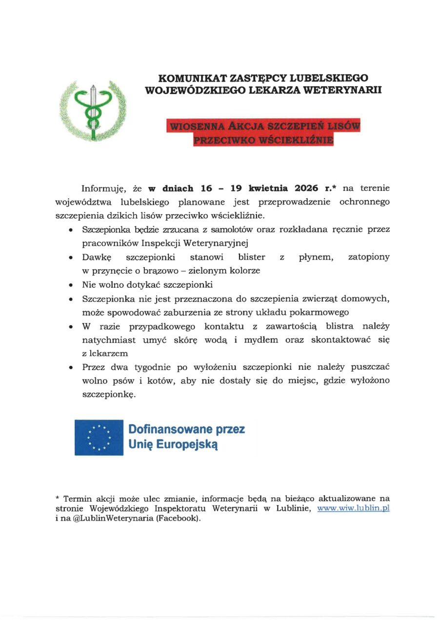 Wiosenna akcja szczepienia lisów