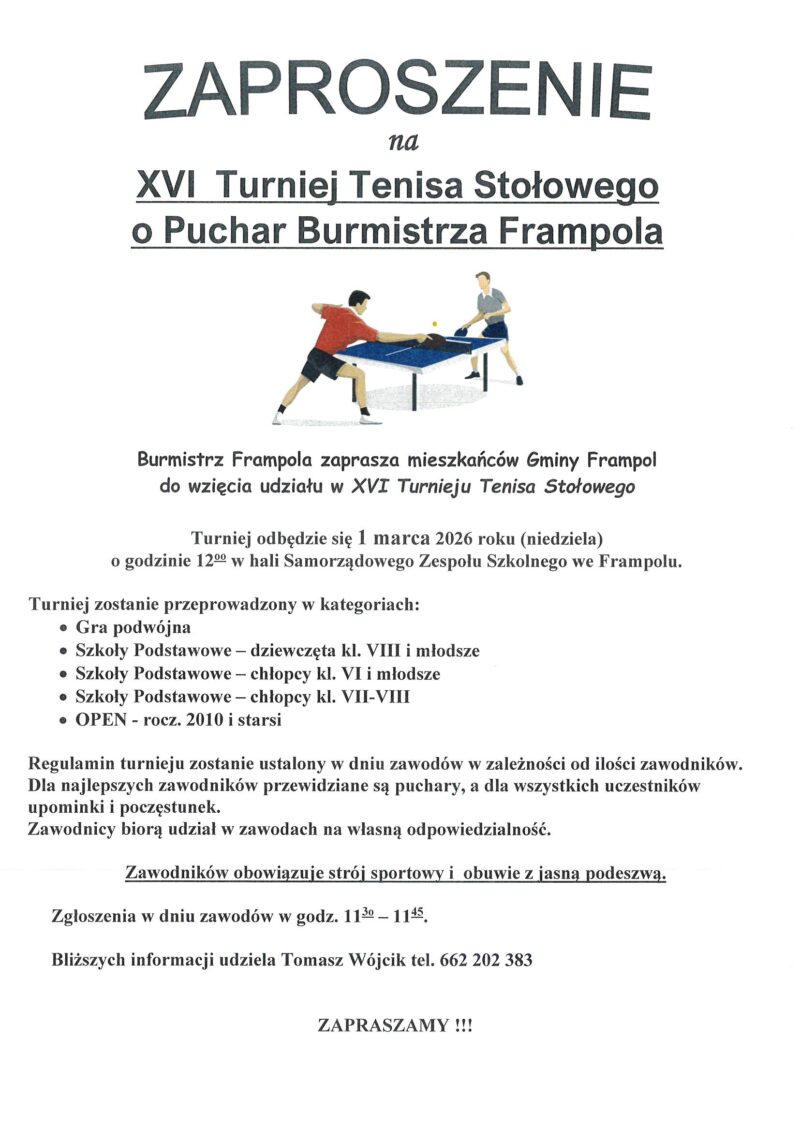 Zaproszenie na Turniej Tenisa Stołowego